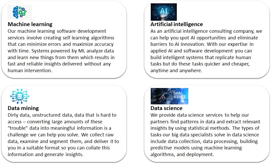 Having years of experience in AI software development services, RiVi offers solutions based on machine learning, big data analytics, robotic process automation, computer vision, video processing and more.